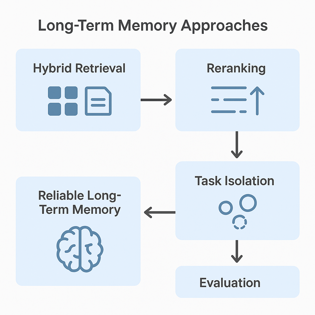 Hybrid Memory Systems: Combining semantic (dense) and keyword-based (sparse) retrieval to improve relevance and reduce information loss.