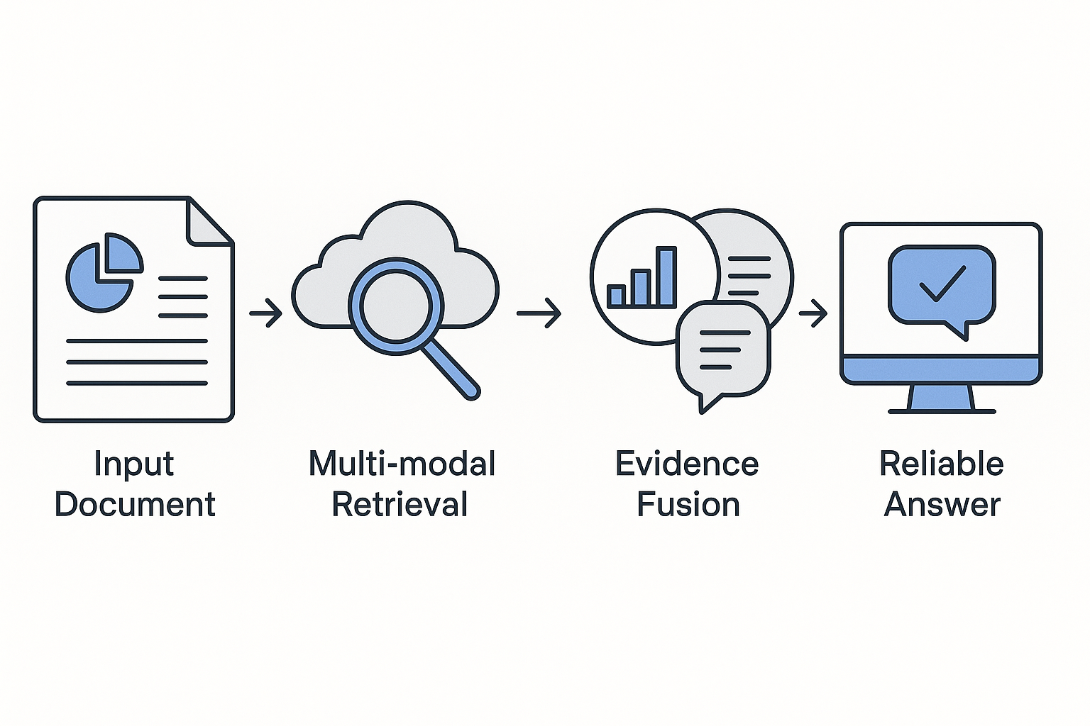 Our approach builds on the latest research in document question answering and multi-modal reasoning. Instead of flattening everything into plain text, we preserve visual information (like graphs or slide layouts) and integrate it alongside written content. This allows our systems to:
